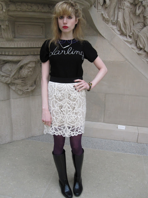 The physical feel and fit of tights is where they can become a problem for me. It is a sacrifice we must make for the cuteness they bring to an outfit. Tights can be exactly what their name says: tight. I don’t mind the feel of them on my legs, but it can be a little bothersome when the waistband is too tight or comes up too high. It’s awkward when your tights come up higher on your torso than your skirt. You make it work though for the sake of fashion!I would say I prefer tights to pants for fashion’s sake, but pants are more comfortable and more convenient for bathroom trips. Leggings are a nice medium.